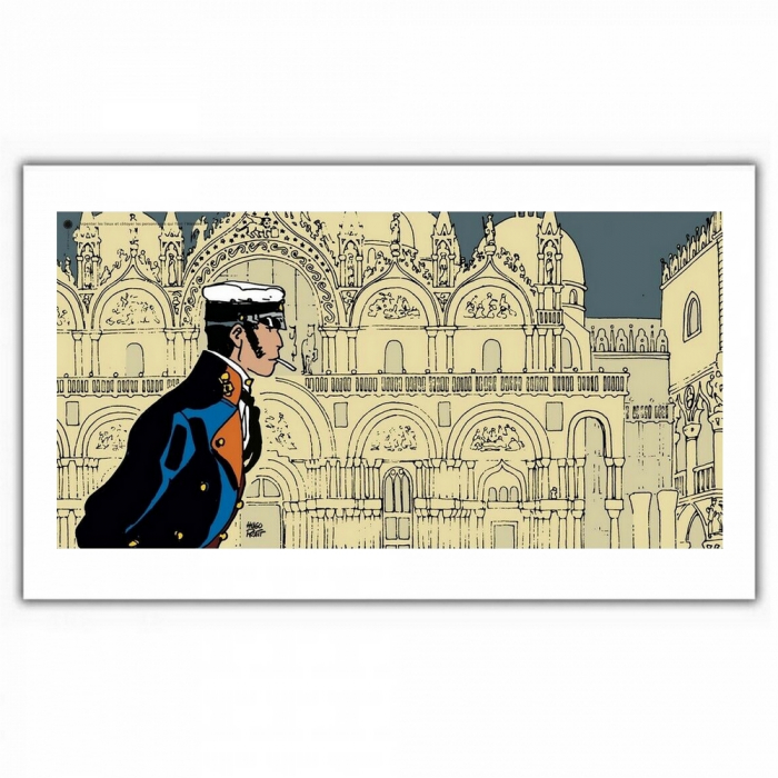 Cette affiche offset d'art dérivée de la bande dessinée Corto Maltese de Hugo Pratt est imprimée sur un papier d'art de qualité estampe pigmentaire. Edition limitée à 500 exemplaires avec certificat d'authenticité numéroté. 60x35cm. Histoire.
