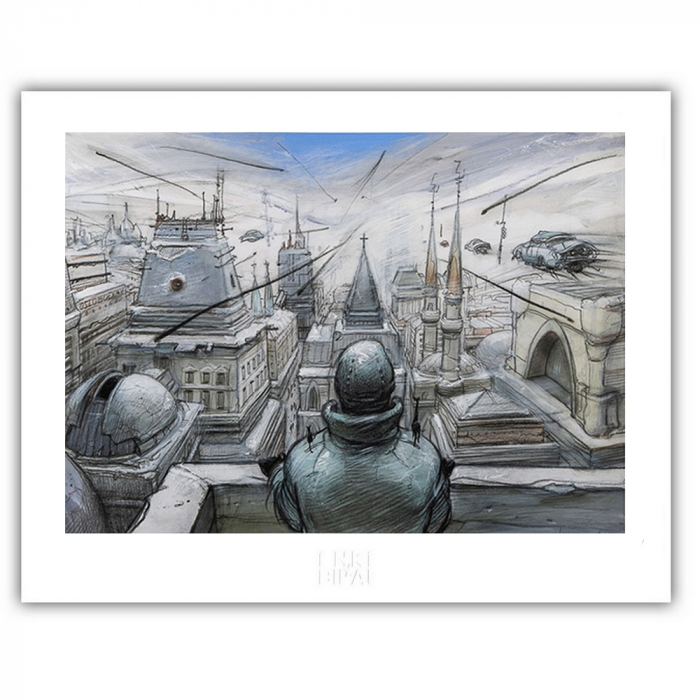 Estampe pigmentaire d'art issue d'un dessin original de Enki Bilal. Editée sur un papier d'art Hahnemuhle Photo Rag 308g. Edition limitée et numérotée à 300 exemplaires avec certificat d'authenticité. 50x40cm. Monstre.