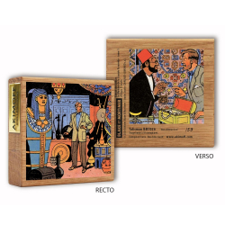 Talisman double face en chêne massif collection du fabricant Akimoff, Blake et Mortimer de l’album Le Mystère de Grande Pyramide: Mortimer chez l'antiquaire. Tirage: 59 exemplaires numérotés de 1 à 59.