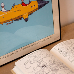 Produit officiel sous licence en édition d'art imprimée sur papier Novatech demi-mat 250g. Cadre non fourni. Moebius Major - Chasseur déprime. Jean Giraud. Dimensions: 50x70cm.