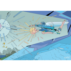 Produit officiel sous licence en édition d'art imprimée sur papier Novatech demi-mat 250g. Cadre non fourni. Moebius Le Saut de l'Ange - Part.2. Jean Giraud. Dimensions: 100x35cm.