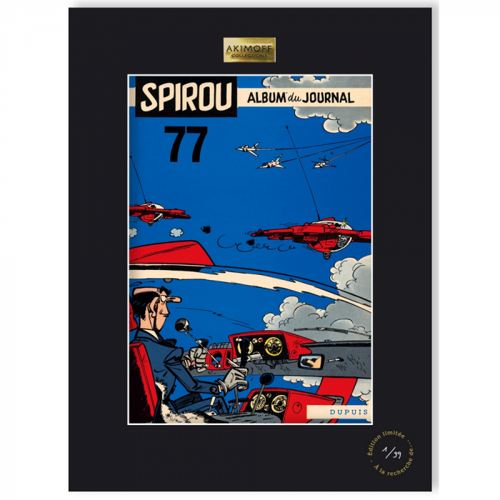 Dans cette couverture saisissante du Journal Spirou n°77, Franquin imagine une invasion façon science-fiction à la Zorglub. Le ciel est saturé d'engins volants rouges, aux allures de soucoupes supersoniques, filant en formation au-dessus des nuages. Aux commandes d’un cockpit ultra-technologique, Zorglub lui-même garde un calme olympien.