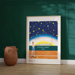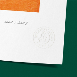 Produit officiel sous licence en édition d'art imprimée sur papier Hahnemühle FineArt Hemp 290g. Cadre non fourni. Imprimé en France. Édition limitée et numérotée à la main à 2023 exemplaires. Tampon à sec attestant de son authenticité. Roland-Garros Paris 2023. Maxime Verdier. Dimensions: 70x100cm.