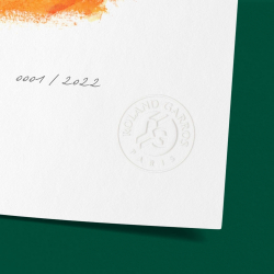 Produit officiel sous licence en édition d'art imprimée sur papier Hahnemühle FineArt Hemp 290g. Cadre non fourni. Imprimé en France. Édition limitée et numérotée à la main à 2022 exemplaires. Tampon à sec attestant de son authenticité. Roland-Garros Paris 2022. Louise Sartor. Dimensions: 70x100cm.