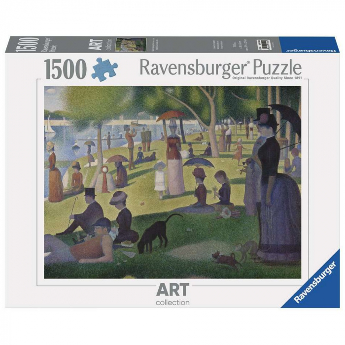Ce puzzle Ravensburger de 1500 pièces représente le chef-d’œuvre de Georges Seurat, Un dimanche après-midi à l’île de la Grande Jatte. Fabriqué en carton épais de haute qualité, il offre une finition mate sans reflets. Les dimensions du puzzle assemblé sont de 80x60cm. Un défi artistique idéal pour les passionnés d'art et de détente.