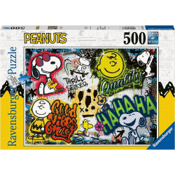 Ce puzzle Ravensburger de 500 pièces représente Peanuts, Snoopy Graffiti. 70x50cm.