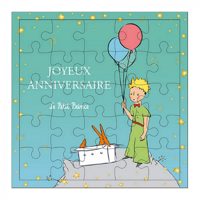 Puzzle pour enfants, 25 pièces du Petit Prince, Joyeux Anniversaire. Puzzle en carton. Dimensions du Puzzle 17,5x17,5cm.