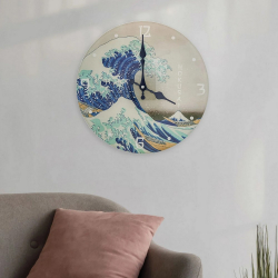 Horloge murale décorative en verre Enesco, Katsushika Hokusai: La Grande Vague de Kanagawa. Diamètre: 30cm.