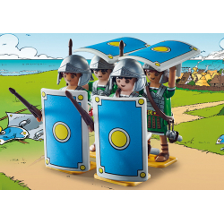 Avec leurs boucliers, les quatre légionnaires romains peuvent réaliser la formation tortue. Avec ce set Playmobil Astérix vous pourrez organiser votre attaque contre les Gaulois. Contient 4 figurines de légionnaires Romains avec lance et accessoires.