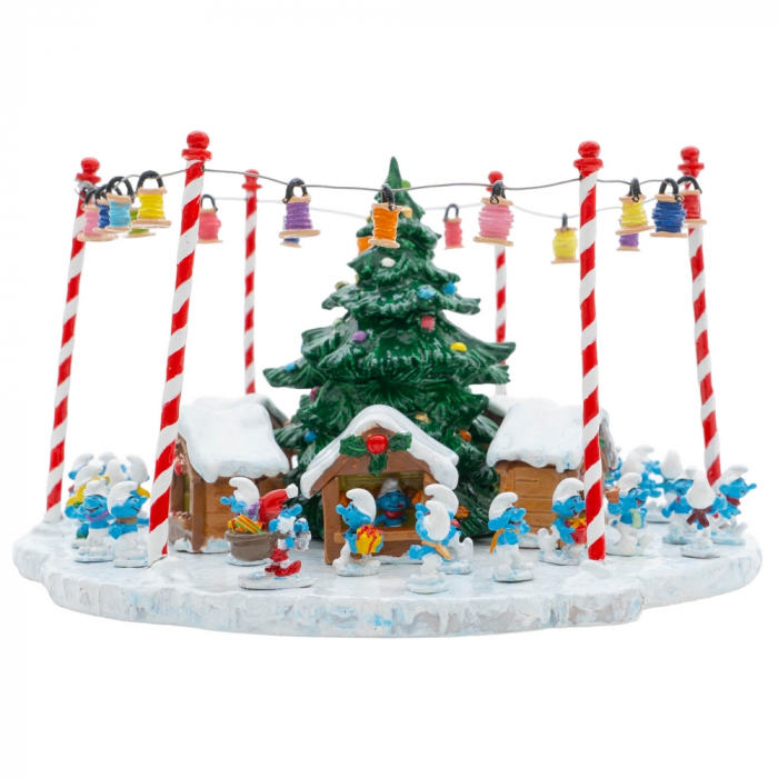 Figurine de collection en métal Pixi: Le marché de noël des Schtroumpfs. Edition limitée et numérotée à max 250 exemplaires avec certificat d'authenticité. Diamètre: 16cm.