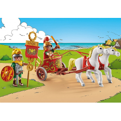 Plongez dans l'univers d'Astérix et Obélix grâce au coffret PLAYMOBIL Astérix : Le char romain. Rejoignez Brutus à bord du majestueux char de combat et roulez dans le sable chaud. Les deux chevaux blancs hennissent d'impatience. PLAYMOBIL vous propose un personnage très réaliste et ressemblant à celui de la bande dessinée. Les personnages connus des Aventures d'Astérix offrent d'innombrables possibilités de jeu, assurant aux enfants des heures d'amusement.