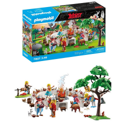 Il est temps de célébrer le retour des héros. La grande table de fête est déjà dressée et un délicieux sanglier rôtit à la broche au-dessus du feu. Assurancetourix tentera-t-il d'interpréter ses dernières compositions pour les villageois ? Obélix, Idéfix, Assurancetourix, 2 Gaulois, 2 Gauloises, 6 tables et accessoires. 159 pièces.