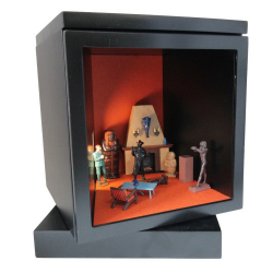 Cube case décorative avec figurine en métal Pixi collection Pixirama Blake et Mortimer: Mortimer démasquant Guinea Pig. Entièrement sculptées et peintes à la main, les figurines Pixi sont de véritables pièces de collection. Edition limitée et numérotée à 200 exemplaires avec certificat d'authenticité. Dimensions du cube en bois laqué: 22,5x22,5x22,5cm.