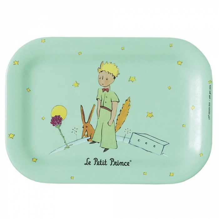 Plateau Petit Jour, Le Petit Prince et le Renard. Lavable en lave-vaisselle. Ne pas utiliser au micro-ondes, ni au congélateur. Colour verte. Matière: mélanine. Dimensions: 20,5x14,5cm.