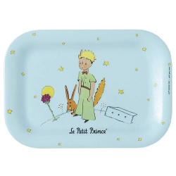 Plateau Petit Jour, Le Petit Prince et le Renard. Lavable en lave-vaisselle. Ne pas utiliser au micro-ondes, ni au congélateur. Colour bleu. Matière: mélanine. Dimensions: 20,5x14,5cm.