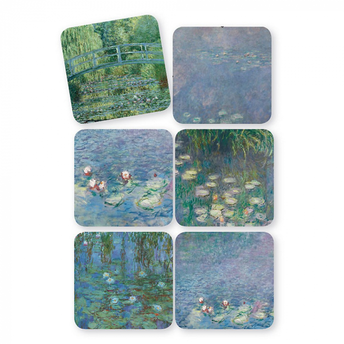 Set de 6 sous-verres de collection Claude Monet: Les Nymphéas. Dimensions: 10,5x10,5cm.