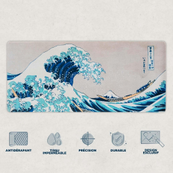 Tapis de bureau Erik, Katsushika Hokusai. Protection de bureau en surface textile haute densité, optimale pour une utilisation intensive, précise avec tout type de souris et étanche. Bords renforcés et base en caoutchouc antidérapant. Dimensions: 80x35cm.