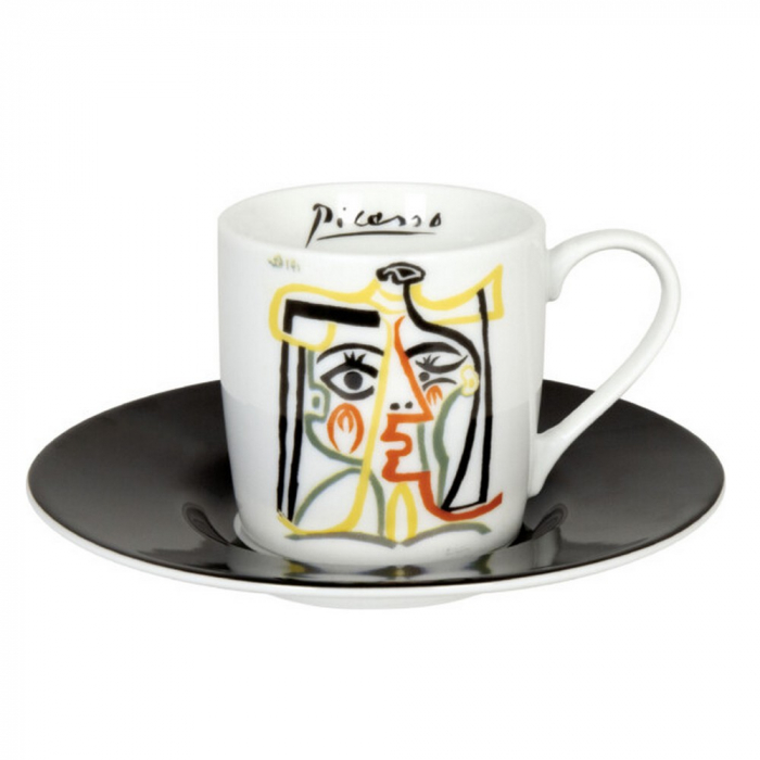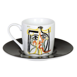 Porcelaine de qualité de la marque allemande Könitz, Pablo Picasso: Portrait de Jacqueline au Chapeau de Paille. Idéal pour un cadeau, compatible avec micro-ondes et lave-vaisselle. 85ml. Diamètre de la soucoupe: 12cm. Hauteur de la tasse: 6cm.