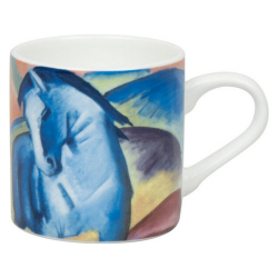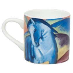 Le Cheval Bleu I est sans conteste l'une des œuvres les plus importantes de l'artiste Franz Marc. Le motif représente un poulain bleu sur un fond tout aussi coloré, caractérisé par divers contrastes complémentaires. Il crée ainsi un univers imaginaire, loin des couleurs naturelles et des représentations animales classiques. Les couleurs vives sont particulièrement mises en valeur sur la tasse à expresso Franz Marc, décorée à la main.