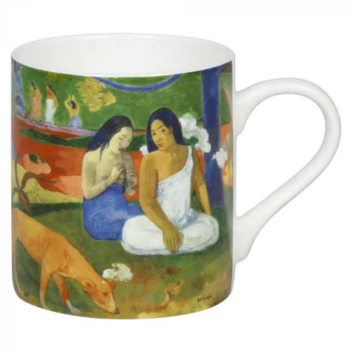 Ce mug représente Arearea de Paul Gauguin, l'une des œuvres les plus célèbres de l'artiste français. Créée en 1892, elle représente Tahiti marquée par la pauvreté et la maladie, tandis que Gauguin la dépeint comme un monde exotique peuplé d'habitants apparemment heureux et insouciants – reflet d'un paradis perdu. L'œuvre est exposée au musée d'Orsay à Paris et est propriété de l'État français.