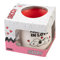 Mug en céramique de qualité Erik, Snoopy: Falling in love. Idéal pour un cadeau, compatible avec micro-ondes et lave-vaisselle. Le petit-déjeuner sera beaucoup plus amusant si vous êtes un fan des aventures de Snoopy. 350ml.