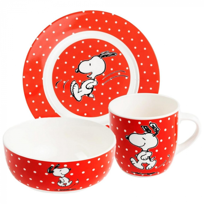 Ensemble de tasse, bol et assiette en porcelaine de qualité de la marque allemande United Peanuts Snoopy. Idéal pour un cadeau, compatible avec micro-ondes et lave-vaisselle. Le petit-déjeuner sera beaucoup plus amusant si vous êtes un fan de ces personnages iconiques !!