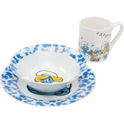 Ensemble de tasse, bol et assiette en porcelaine de qualité de la marque allemande United Les Schtroumpfs. Idéal pour un cadeau, compatible avec micro-ondes et lave-vaisselle. Le petit-déjeuner sera beaucoup plus amusant si vous êtes un fan de ces personnages iconiques !!