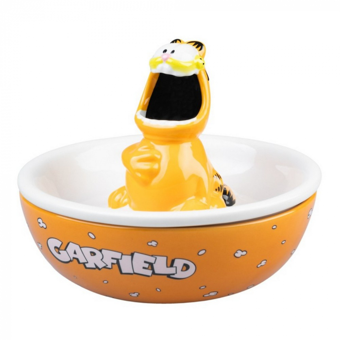 Bol à céréales ou snack en dolomite avec figurine de qualité Erik, Garfield: avec la bouche ouverte. Le petit-déjeuner sera beaucoup plus amusant si vous êtes un fan de Garfield. 500ml.
