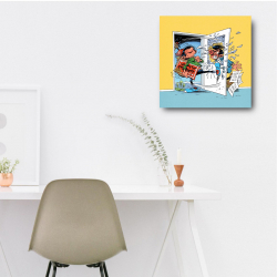Reproduction fidèle de l'oeuvre de la bande dessinée Gaston Lagaffe, Delaf: Le retour de Lagaffe. Toile Fine Art Polycoton Premium de 350g/m2. 100% fabriqués en France.
