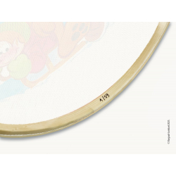 Ce canevas illustré monté en cerceau bambou dérivée de la bande dessinée Boule et Bill par Jean Roba est imprimé sur une toile aspect Coton de qualité 316g/m2. Chaque exemplaire est encadré dans un cerceau en bambou. Edition limitée et numérotée à 59 exemplaires. Dimensions: 20cm de diamètre. Dans la neige.