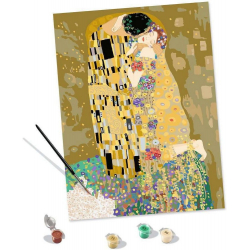 Coffret tableau de peinture par numéros CreArt Ravensburger, Gustav Klimt: Le Baiser. Tout le monde peut être un artiste avec la peinture par numéros ! Peignez pas à pas grâce aux champs de peinture numérotés et réalisez un véritable chef-d'œuvre. Vous serez fiers de dévoiler votre réalisation ! 30x40cm.
