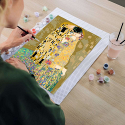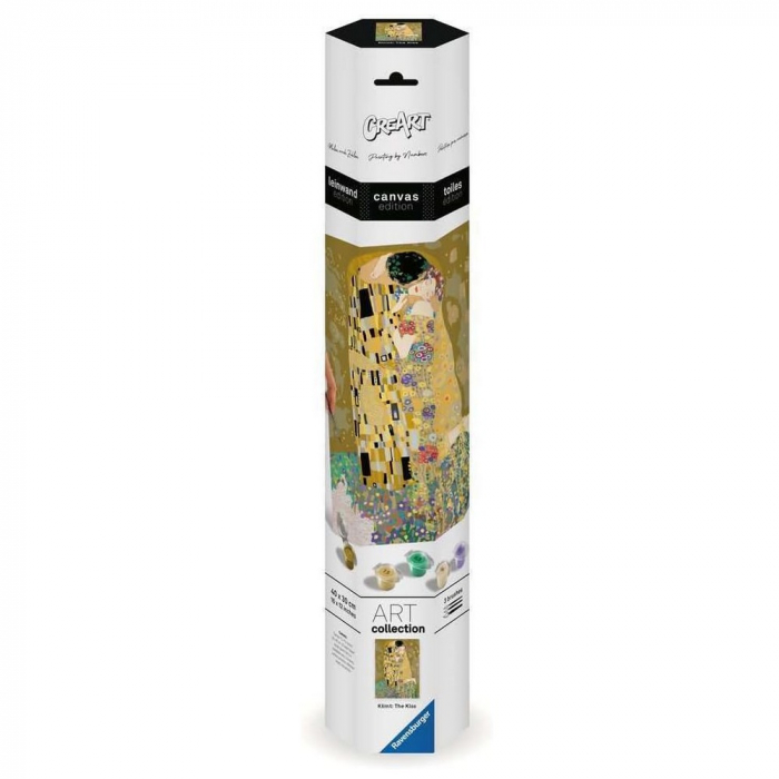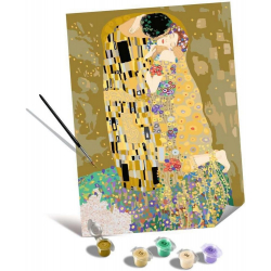 Coffret toile de peinture par numéros CreArt Ravensburger, Gustav Klimt: Le Baiser. Tout le monde peut être un artiste avec la peinture par numéros ! Peignez pas à pas grâce aux champs de peinture numérotés et réalisez un véritable chef-d'œuvre. Vous serez fiers de dévoiler votre réalisation ! 30x40cm.