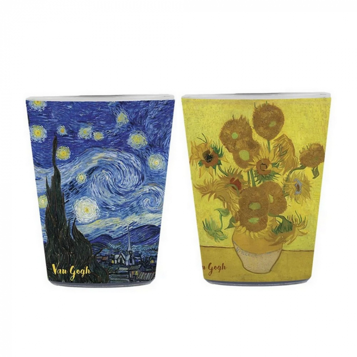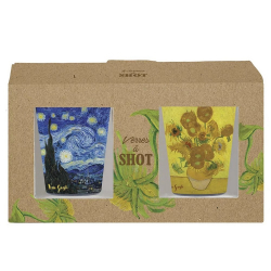 Set de 2 verres à shot Enesco, Vincent Van Gogh: Tournesols et Nuit Étoilée. Idéal pour un cadeau ! Le verre est officiel et sous license.